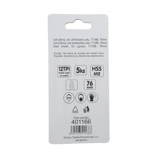 | Nazwa produktu | TOPTRADE brzeszczot do wyrzynarki, T118B, 76 mm, metal, opakowanie 5 szt. |