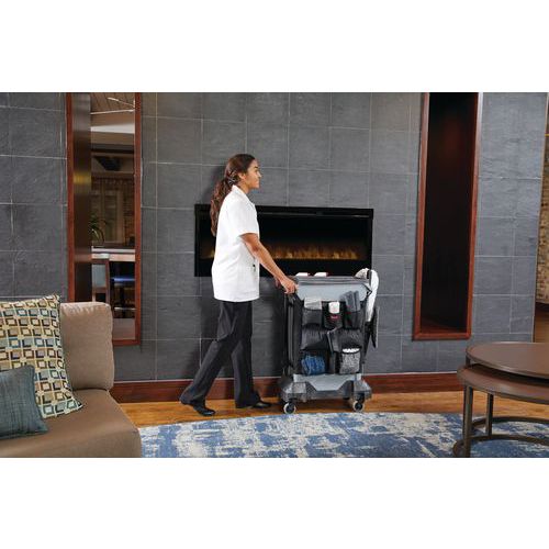 Wyposażony w 19 przegródek do przechowywania i transportu powszechnie używanych środków czyszczących i worków na śmieci potrzebnych do sprzątania i zbierania odpadów.