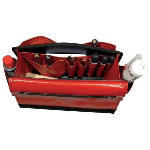 - Niezwykle lekki. Bardzo wytrzymały. Szybki dostęp do narzędzi. Wygodna rączka lub pasek na ramię. Taśma odblaskowa.