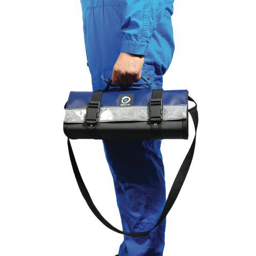 Zawiera: 1 elastyczny zamek błyskawiczny i 2 klipsy. 1 duża przestrzeń do przechowywania narzędzi. 1 centralny uchwyt do przenoszenia. 2 boczne uchwyty do przenoszenia. 1 pasek na ramię.