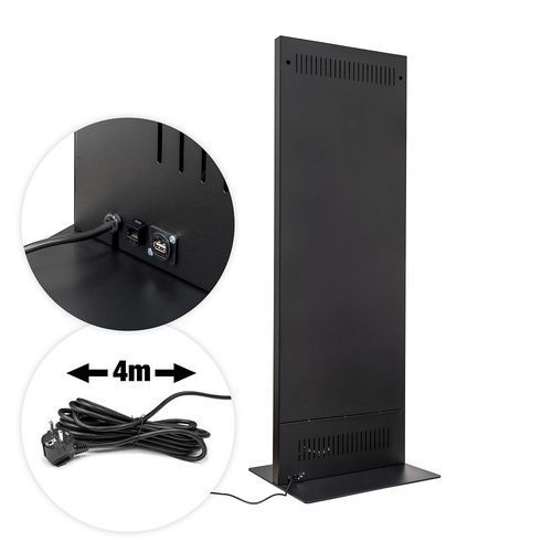 Totem cyfrowy cienki, jednostronny, czarny, z monitorem