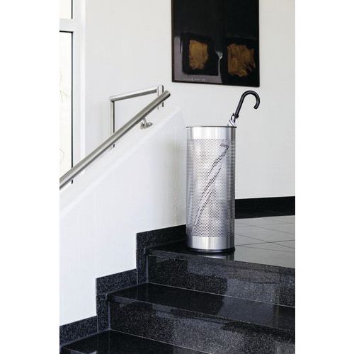 - Elegancki stojak na parasole z perforowanymi ściankami.