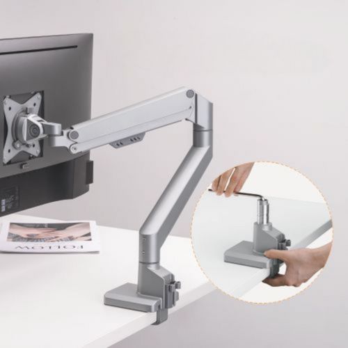 Uchwyt monitora Brateck LDT62-C012 to innowacyjny uchwyt stołowy z podporą pneumatyczną, który zaprojektowano przy uwzględnieniu potrzeb użytkownika oraz poprawy przestrzeni roboczej.