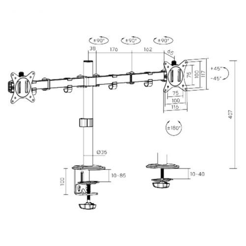 | Nazwa produktu | Uchwyt monitora Brateck LDT66-C024, dwa ramiona przegubowe obok siebie na uchwycie prętowym |