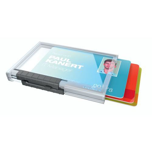 Uchwyt na karty Pushbox Trio 54x85mm z suwakiem.