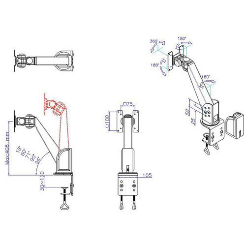 Ramię obrotowe można dzięki 4 ruchomym przegubom ustawić w dowolnym położeniu.