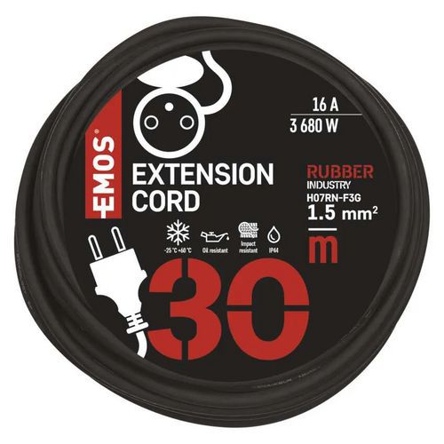 Przedłużacz zewnętrzny, 30 m, 1 gniazdko, guma – neopren, 1,5 mm2