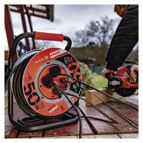 Przedłużacze zewnętrzne na bębnie, 4 gniazdka, guma, 1,5 mm2