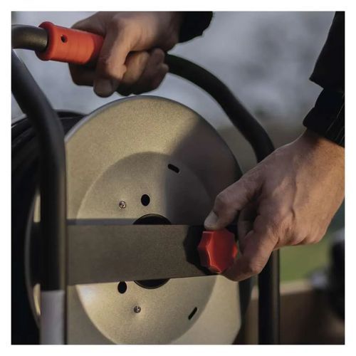 Hamulec blokujący szpulę zapobiega samoistnemu zwijaniu kabla i unieruchamia przewód w wymaganym położeniu.