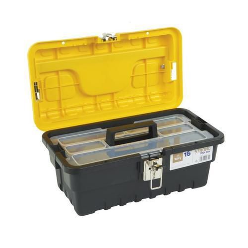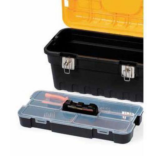 - Walizki na narzędzia wyposażone w wyjmowany wkład do noszenia drobnych narzędzi z przezroczystą pokrywą.