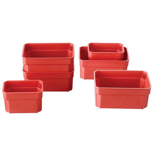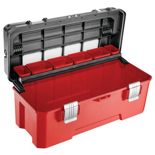 - Plastikowe skrzynki narzędziowe z przegródkami i tacami.