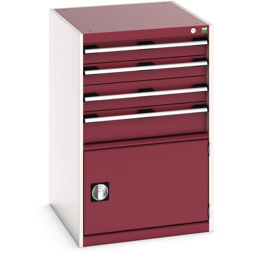 Warsztatowa szafka z szufladami Bott Cubio, 100 x 65 x 75 cm, 4 szuflady, 1 szafka, szaro-czerwona