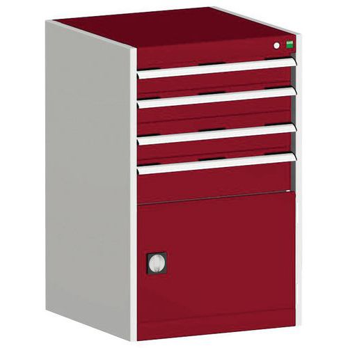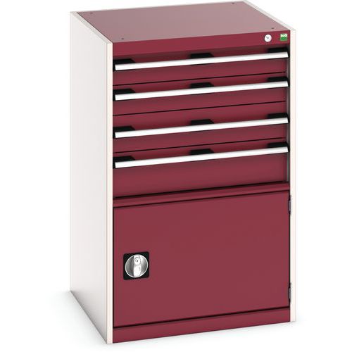Warsztatowa szafka z szufladami Bott Cubio, 100 x 65 x 65 cm, 4 szuflady, 1 szafka, szaro-czerwona