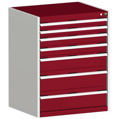 Warsztatowa szafka z szufladami Bott Cubio, 100 x 80 x 75 cm, 7 szuflad, szaro-czerwona
