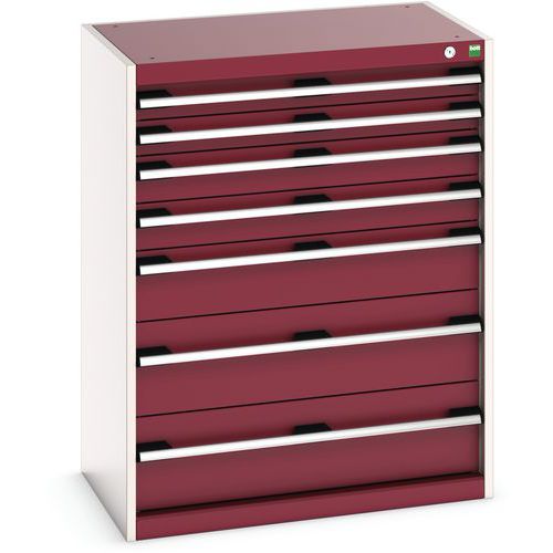 Warsztatowa szafka z szufladami Bott Cubio, 100 x 80 x 52,5 cm, 7 szuflad, szaro-czerwona