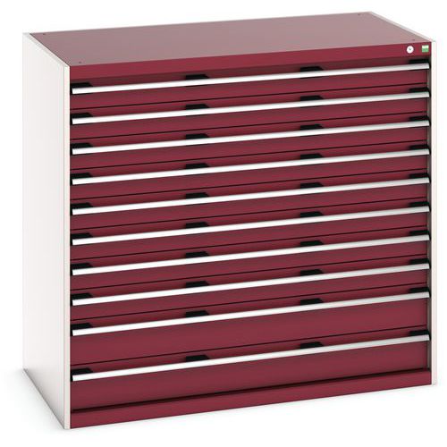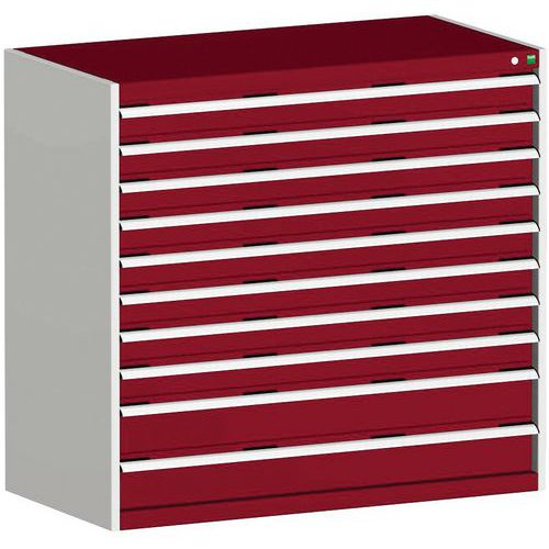 Warsztatowa szafka z szufladami Bott Cubio, 120 x 130 x 75 cm, 10 szuflad, szaro-czerwona