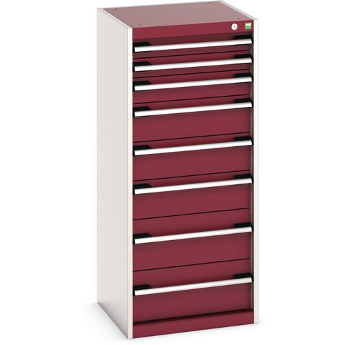Warsztatowa szafka z szufladami Bott Cubio, 120 x 52,5 x 52,5 cm, 8 szuflad, szaro-czerwona