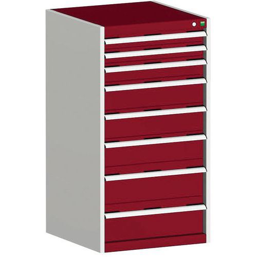 Warsztatowa szafka z szufladami Bott Cubio, 120 x 65 x 65 cm, 8 szuflad, szaro-czerwona