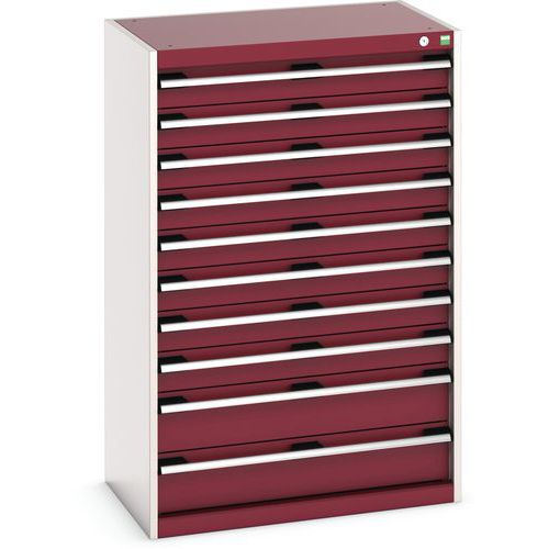 Warsztatowa szafka z szufladami Bott Cubio, 120 x 80 x 52,5 cm, 10 szuflad, szaro-czerwona