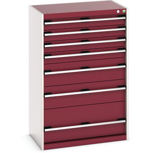 Warsztatowa szafka z szufladami Bott Cubio, 120 x 80 x 52,5 cm, 7 szuflad, szaro-czerwona