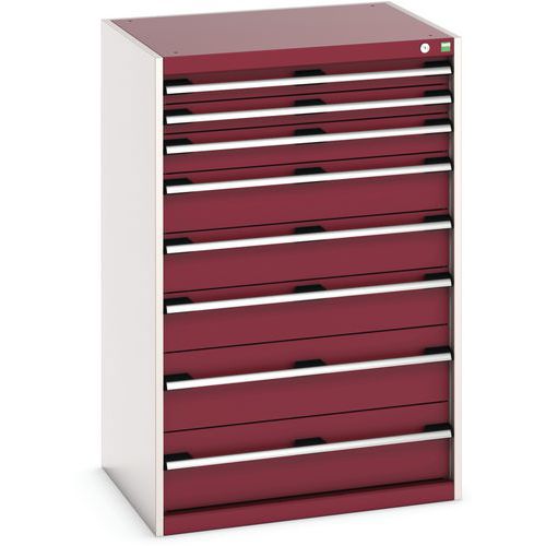 Warsztatowa szafka z szufladami Bott Cubio, 120 x 80 x 65 cm, 8 szuflad, szaro-czerwona