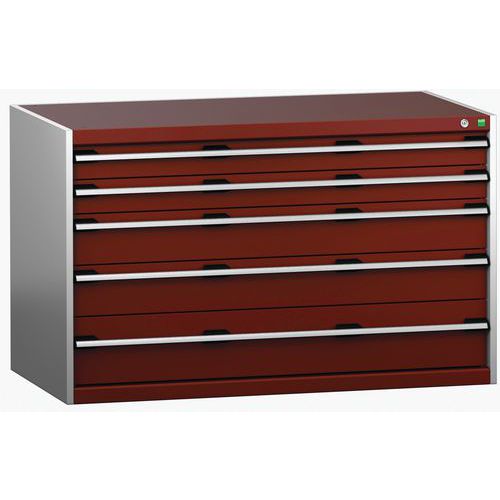 Szafka warsztatowa z szufladami Bott Cubio 200, 80 x 130 x 75 cm, 5 szuflad, szaro-czerwona