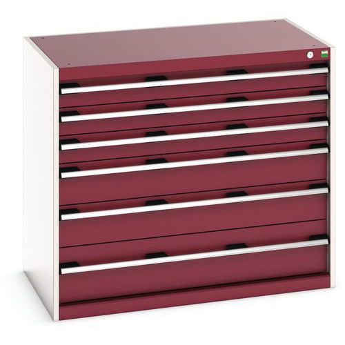 Warsztatowa szafka z szufladami Bott Cubio 200, 90 x 105 x 65 cm, 6 szuflad, szaro-czerwona