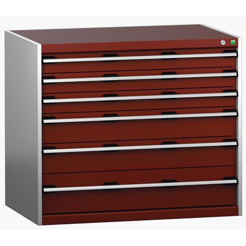 Warsztatowa szafka z szufladami Bott Cubio 200, 90 x 105 x 75 cm, 6 szuflad, szaro-czerwona