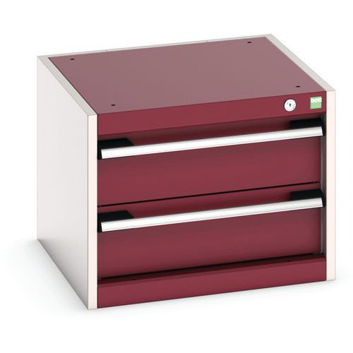 Warsztatowa szafka z szufladami Bott Cubio, 40 x 52,5 x 52,5 cm, 2 szuflady, szaro-czerwona