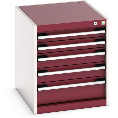 Warsztatowa szafka z szufladami Bott Cubio, 60 x 52,5 x 65 cm, 5 szuflad, szaro-czerwona