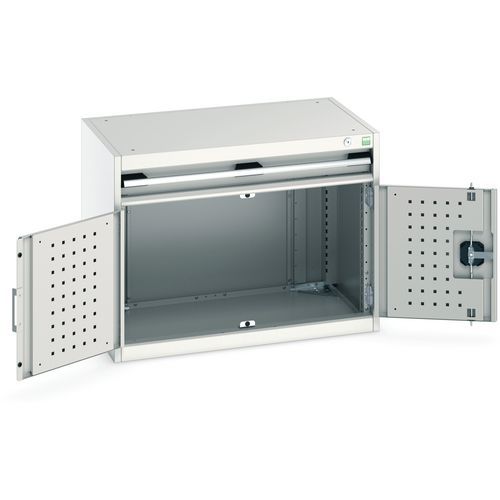 - Drzwi szafy z perforowaną stroną wewnętrzną do przechowywania narzędzi.
