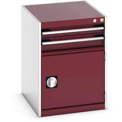 Warsztatowa szafka z szufladami Bott Cubio, 70 x 52,5 x 65 cm, 2 szuflady, 1 szafka, szaro-czerwona