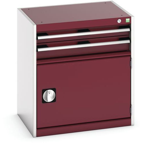 Warsztatowa szafka z szufladami Bott Cubio, 70 x 65 x 52,5 cm, 2 szuflady, 1 szafka, szaro-czerwona