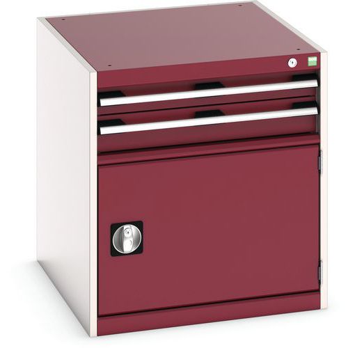 Warsztatowa szafka z szufladami Bott Cubio, 70 x 65 x 75 cm, 2 szuflady, 1 szafka, szaro-czerwona