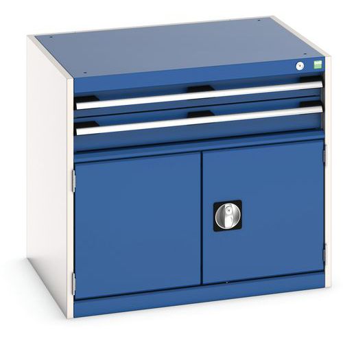 Warsztatowa szafka z szufladami Bott Cubio, 70 x 80 x 65 cm, 2 szuflady, 1 szafka, szaro-niebieska