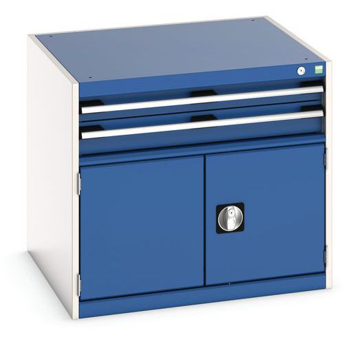Warsztatowa szafka z szufladami Bott Cubio, 70 x 80 x 75 cm, 2 szuflady, 1 szafka, szaro-niebieska