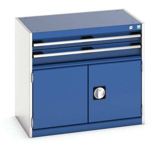 Warsztatowa szafka z szufladami Bott Cubio, 70 x 80 x 52,5 cm, 2 szuflady, 1 szafka, szaro-niebieska