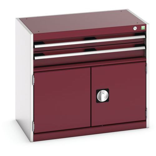 Warsztatowa szafka z szufladami Bott Cubio, 70 x 80 x 52,5 cm, 2 szuflady, 1 szafka, szaro-czerwona