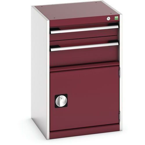 Warsztatowa szafka z szufladami Bott Cubio, 80 x 52,5 x 52,5 cm, 2 szuflady, 1 szafka, szaro-czerwony