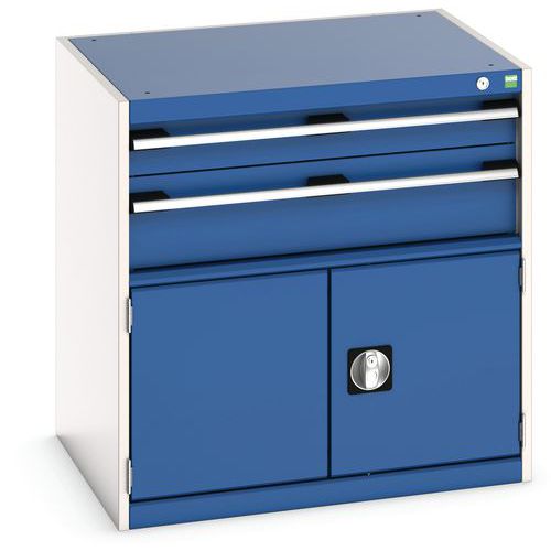 Warsztatowa szafka z szufladami Bott Cubio, 80 x 80 x 65 cm, 2 szuflady, 1 szafka, szaro-niebieska