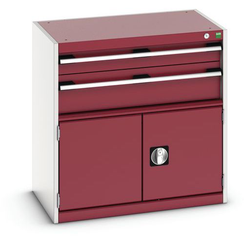 Warsztatowa szafka z szufladami Bott Cubio, 80 x 80 x 52,5 cm, 2 szuflady, 1 szafka, szaro-czerwona
