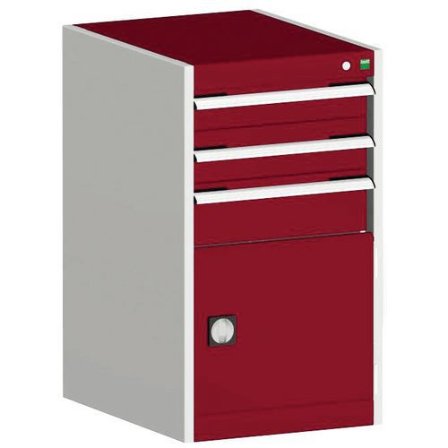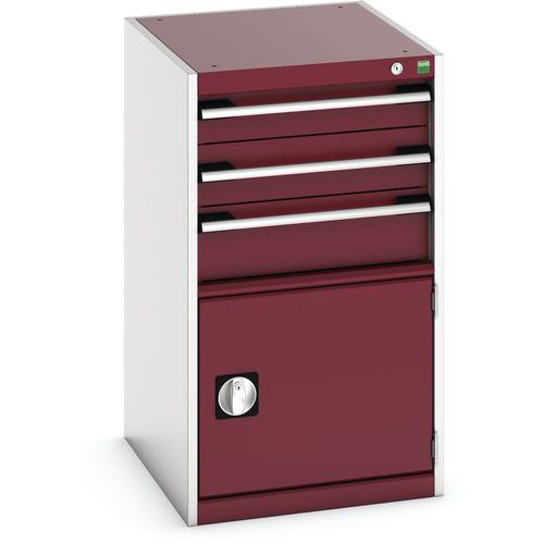 Warsztatowa szafka z szufladami Bott Cubio, 90 x 52,5 x 65 cm, 3 szuflady, 1 szafka, szaro-czerwona