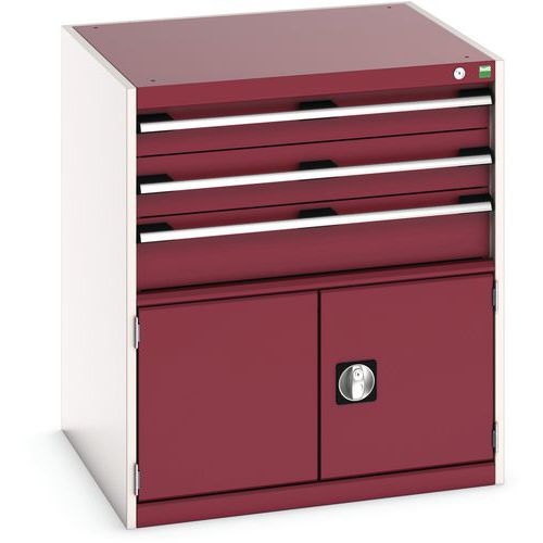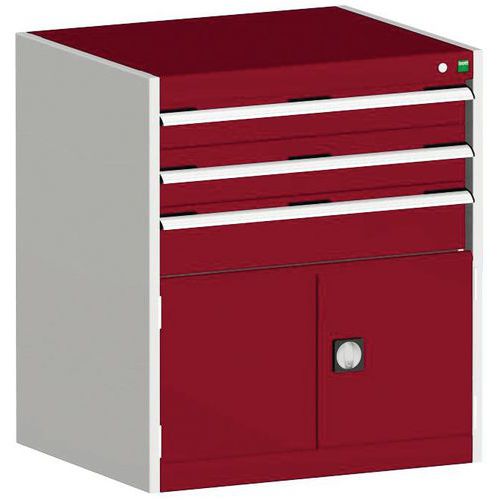 Warsztatowa szafka z szufladami Bott Cubio, 90 x 80 x 75 cm, 3 szuflady, 1 szafka, szaro-czerwona