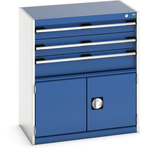 Warsztatowa szafka z szufladami Bott Cubio, 90 x 80 x 52,5 cm, 3 szuflady, 1 szafka, szaro-niebieska