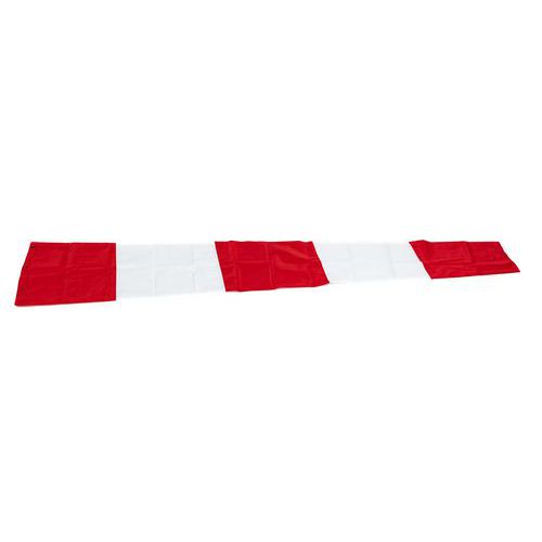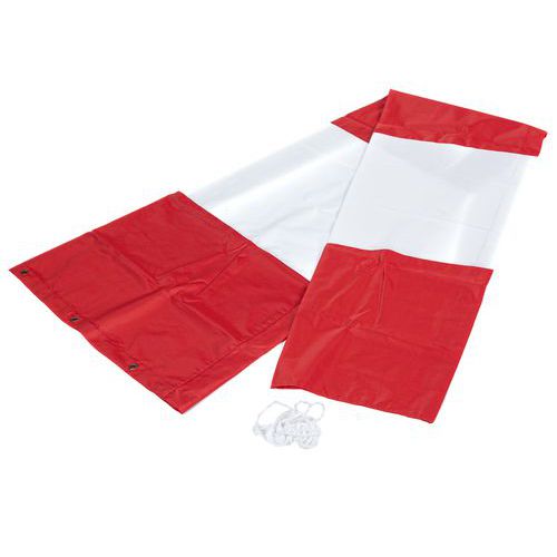 Po napompowaniu naprzemienne pomarańczowe i białe paski odpowiadają szacunkowej prędkości wiatru 5 węzłów (czyli około 9 km/h).