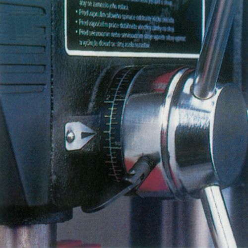 – zapewniona przez regulowany ogranicznik z podziałką. Pozwala to użytkownikowi na wiercenie otworów o tej samej głębokości.