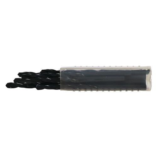 Wiertło cylindryczne ze stali szybkotnącej DIN 338 N. Powierzchnia poddana obróbce parą, wykonana przez walcowanie na gorąco, co zapewnia określoną elastyczność. Mniej kruche od wierteł szlifowanych. Mogą być używane na budowach w wiertarkach el.