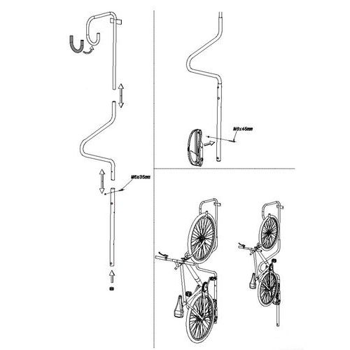 - Konstrukcja jest tak zaprojektowana, że rower można zamontować zarówno u dołu, jak i na poziomie ramy.