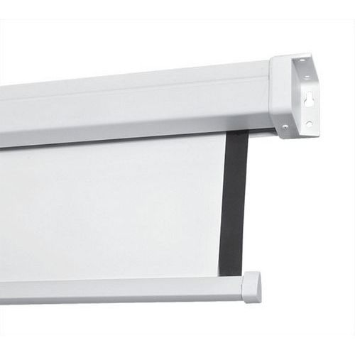 - Ścienny ekran projekcyjny z prostokątną stalową kasetą z końcówkami z tworzywa sztucznego. Z prawej i lewej strony znajdują się zintegrowane uchwyty służące do przymocowania kasety do ściany lub sufitu. Ekrany są wyposażone w zwijanie z automatyczną ze sprężyną powrotną i mechanizmem zatrzymującym co 13 cm. Hamulec wsteczny dla powolnego i kontrolowanego zwijania ekranu.