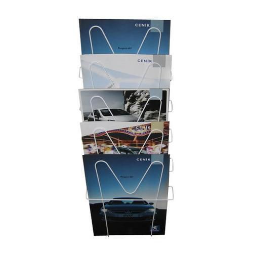 - Druciany pojemnik z 5 kieszeniami wyprofilowanymi na prospekty formatu A4.